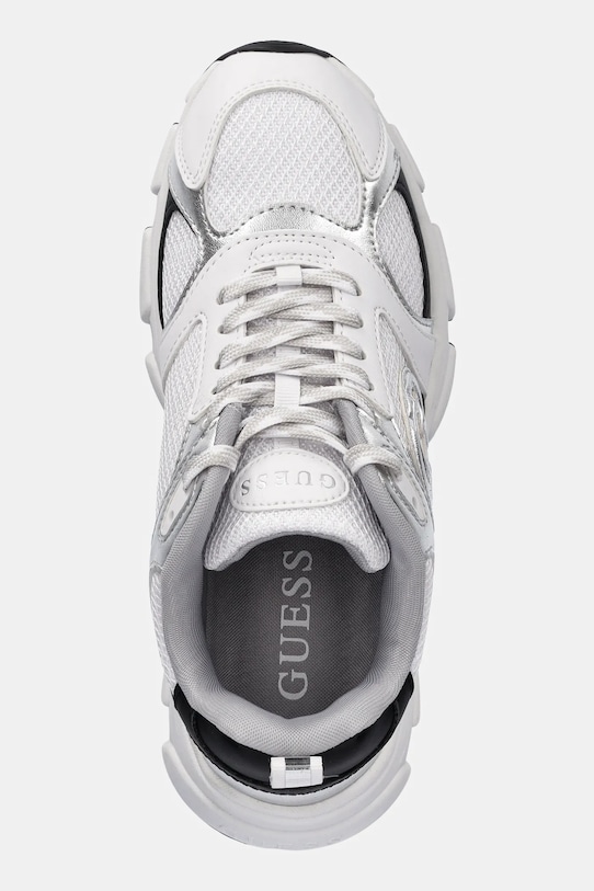 Кроссовки из коллекции Guess, изготовленные из комбинации текстиля и синтетических материалов, легкие и удобные, идеально подходят для повседневной носки. - Зажатый нос. - Усиленный задник обеспечивает отличную поддержку лодыжки и пятки. - Классическая шнуровка позволяет индивидуально подогнать обувь по ноге. - Резиновая подошва прочная и устойчивая к повреждениям. - Съемная, легко чистящаяся текстильная вставка. - Длина вставки: 24,5 см. - Размеры указаны для размера: 37.