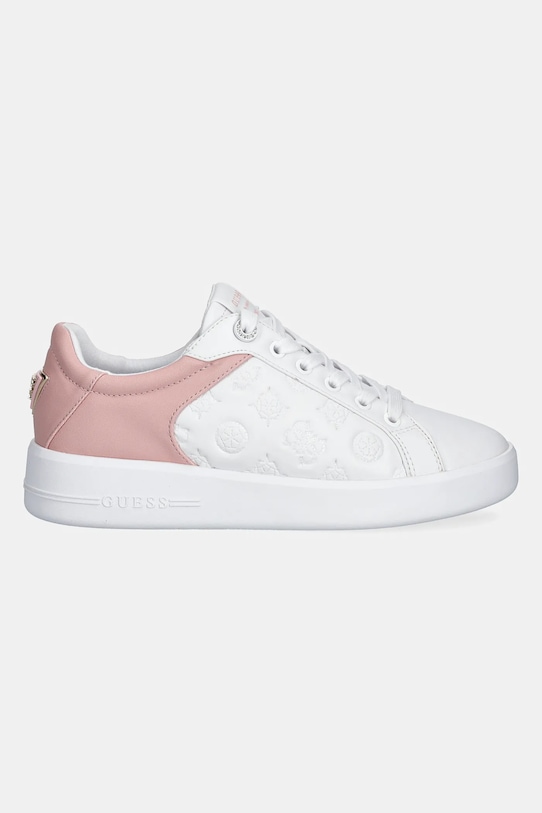 Кроссовки из коллекции Guess, выполненные из экокожи. Модель оснащена прочной и устойчивой к повреждениям резиновой подошвой. - Круглый, жёсткий носок. - Усиленный задник обеспечивает отличную поддержку лодыжки и пятки. - Платформенная модель. - Плоские шнурки устраняют давление на подъем стопы, обеспечивая хорошую посадку и комфорт. - Текстильная внутренняя часть комфортна для ног и облегчает содержание обуви в чистоте. - Резиновая подошва прочная и устойчивая к повреждениям.