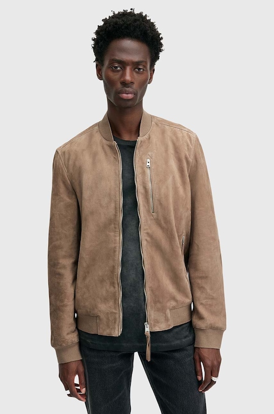 Куртка из коллекции AllSaints. Модель без подкладки выполнена из замши. - Эта модель изготовлена в соответствии с рекомендациями Leather Working Group, которая сертифицирует кожевенные заводы посредством строгих аудитов. Эти усилия направлены на снижение потребления энергии и воды при дублении кожи, а также на устранение загрязнения сточных вод. - Обычная посадка. - Застежка-молния. - Отделка ребер. - Два прорезных боковых кармана на молнии. - Неутепленная модель с подкладкой.