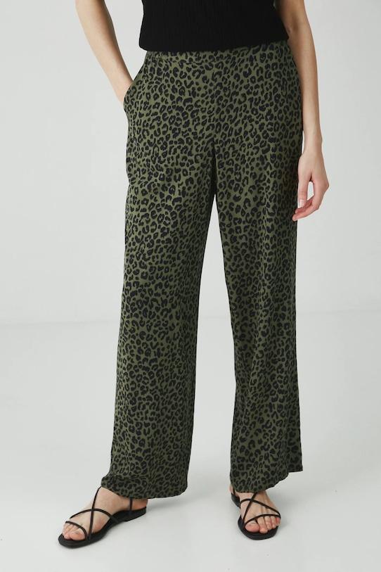 Брюки из коллекции «Медицина». Изготовлены из узорчатой ткани. - Широкий фасон штанины. - Заниженная талия. - Эластичный пояс. - Два боковых накладных кармана. - Широкие штанины. - Узорчатая ткань. - Леопардовый узор. - Ширина талии (до растягивания): 37,5 см. - Ширина талии (после растяжения): 46,5 см. - Ширина бедер: 53 см. - Высота талии: 27 см. - Ширина штанины внизу: 27,5 см. - Длина по внутреннему шву: 80 см. - Размеры указаны для размера: S.