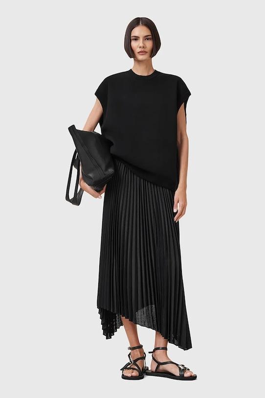 Платье и свитер из коллекции AllSaints. Расклешенный фасон из тонкой, слегка эластичной ткани. - Дизайн «два в одном». Платье на бретельках со свитером. - Расклешенный крой. - Декоративный, заостренный вырез. - Плиссированный материал. - Большой размер. - Классический круглый вырез. - Изготовлено из экологически чистого материала LENZING ECOVERO. LENZING ECOVERO производится из органической целлюлозы и древесной массы, используя на 50% меньше воды, чем популярная вискоза.