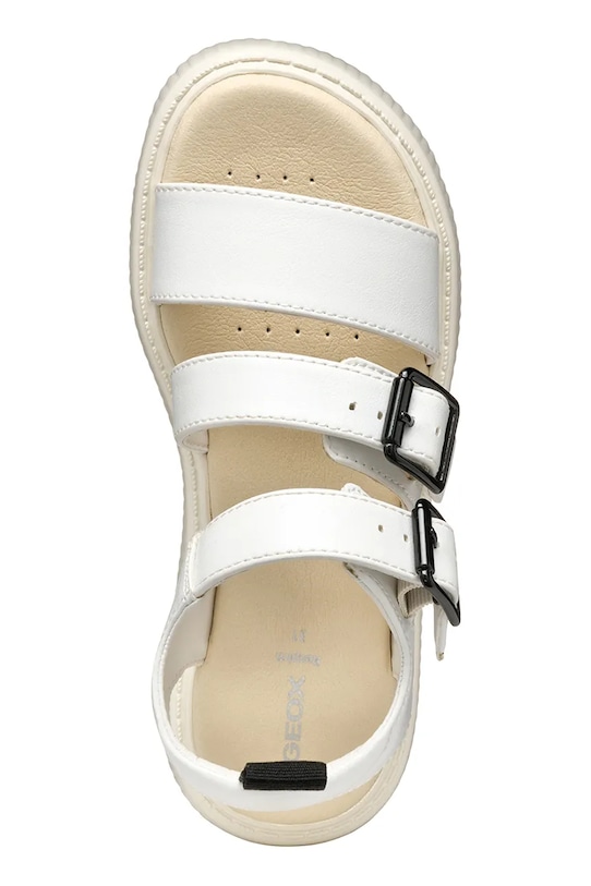 Детские сандалии из коллекции Geox. Изготовлены из экокожи. - Geox Respira System: в них реализована технология Geox Respira, которая благодаря трехслойной подошве с дышащей системой перфорации улучшает вентиляцию, тем самым заботясь о здоровье ваших ног и обеспечивая комфорт при использовании обуви. - Гладкий материал. - Застежка-пряжка со штифтом для индивидуальной подгонки. - Резиновая подошва прочная и устойчивая к повреждениям. - Система амортизации. - Платформенная модель.