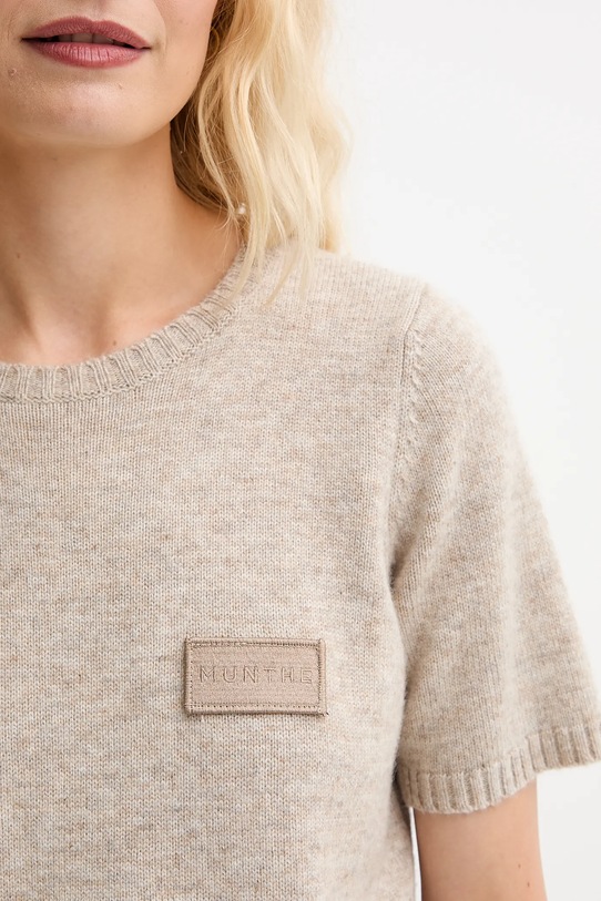 Этот свитер из коллекции MUNTHE выполнен из эластичного трикотажа средней плотности. Высокие терморегулирующие свойства шерсти позволяют сохранять тепло в холод и прохладу в жару. - Простой дизайн, не стесняющий движений. - Круглый ребристый вырез. - Короткие, пышные рукава. - Рукава и низ изделия отделаны манжетами для защиты от неблагоприятных погодных условий. - Модель с нашивкой на груди. - Длина: 54 см. - Ширина под мышками: 49 см. - Размеры указаны для размера: 36.