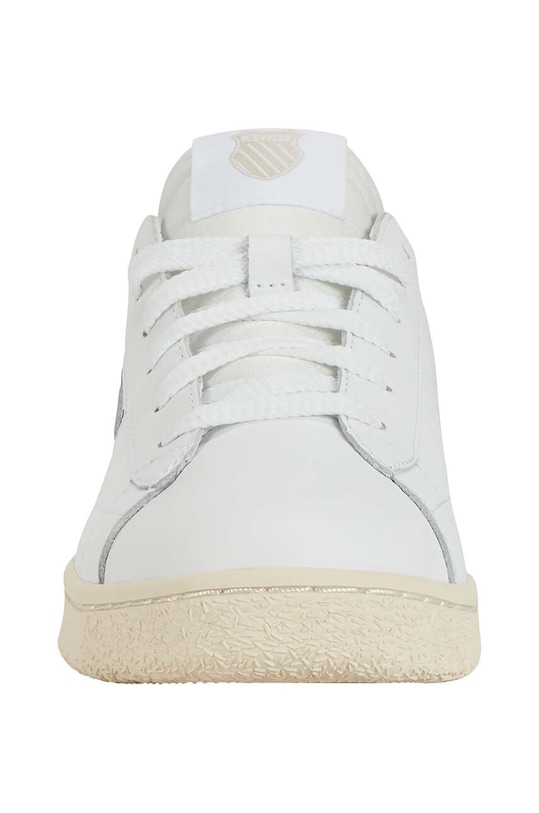 Кроссовки из коллекции K-Swiss. Изготовлены из натуральной кожи и оснащены гибкой резиновой подошвой, которая прочна и устойчива к повреждениям. - Круглый, жёсткий носок. - Текстильная внутренняя часть комфортна для ног и облегчает содержание обуви в чистоте. - Текстильная стелька. - Усиленный задник обеспечивает отличную поддержку лодыжки и пятки. - Модель на шнуровке. - Амортизирующая промежуточная подошва IMEVA. - Резиновая подошва прочная и устойчивая к повреждениям.