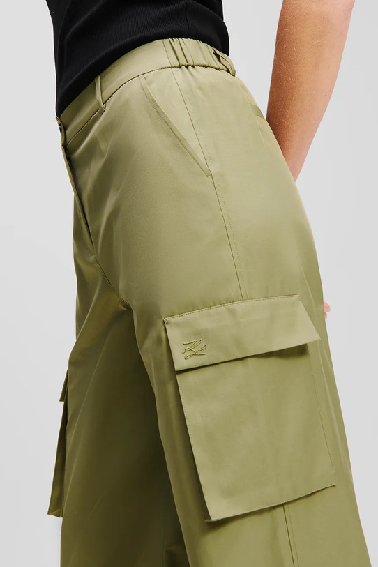 Брюки из коллекции Карла Лагерфельда. Изготовлены из тонкой, слегка тянущейся ткани. - Простой дизайн, не стесняющий движений. - Застежка на пуговицы и молнию. - Карманы для груза. - Гладкая трикотажная ткань. - Прямая нога полной длины.