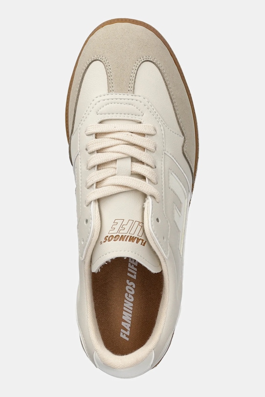Кроссовки из коллекции Flamingos, изготовленные из синтетического материала, имеют прочную и устойчивую к истиранию резиновую подошву. - Верх из экокожи на основе хлопкового полотна, покрытого кукурузным напылением. - Круглый, мягкий нос. - Усиленный задник обеспечивает отличную поддержку лодыжки и пятки. - Плоские шнурки устраняют давление на подъем стопы, обеспечивая хорошую посадку и комфорт. - Текстильная внутренняя часть комфортна для ног и облегчает содержание обуви в чистоте.