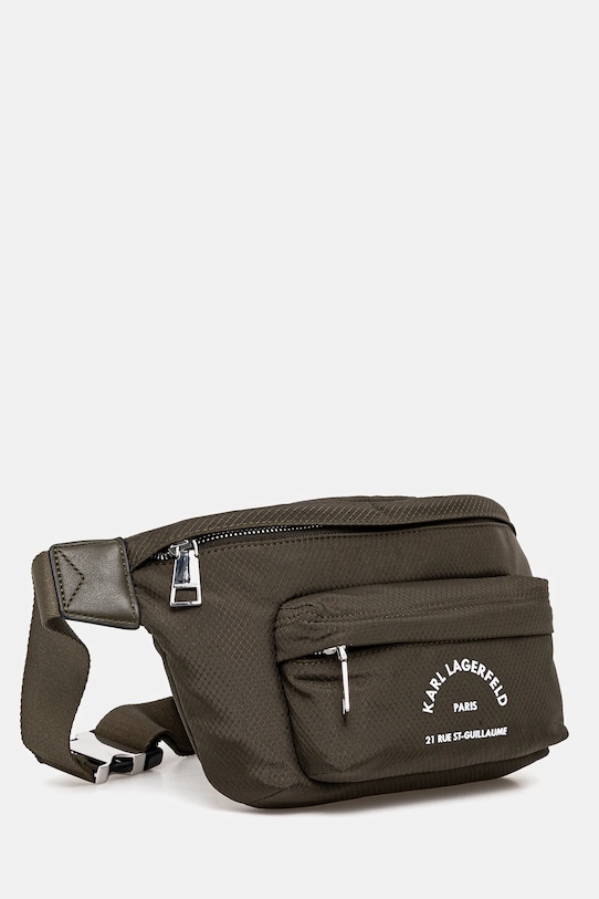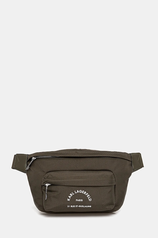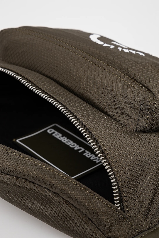 Поясная сумка среднего размера из коллекции Карла Лагерфельда. Модель застёгивается на пуговицы и выполнена из текстиля. - Данное изделие частично изготовлено из переработанного полиэстера. - Несъемный регулируемый ремешок позволяет индивидуально подогнать посадку. - Внутренних карманов нет. - Карман на молнии спереди позволяет безопасно хранить телефон и другие мелкие предметы. - Не подходит для формата А4. - Ширина у основания: 20 см. - Высота: 19 см. - Глубина: 7 см.
