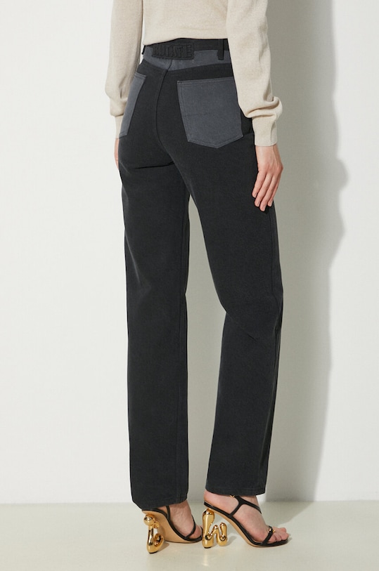Джинсы прямого кроя из коллекции Rotate с высокой талией. Изготовлены из гладкого денима. - Это изделие изготовлено из переработанного хлопка. - Модель с высокой талией, застежкой на пуговицы и молнию. - Три накладных кармана спереди. - Два накладных кармана на ягодицах. - Ширина талии: 35 см. - Ширина бедер: 42 см. - Высота талии: 31 см. - Ширина штанины внизу: 18 см. - Ширина штанины: 27 см. - Длина внешнего шва: 112 см. - Размеры указаны для размера: 26.