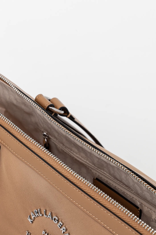 Большая сумка-шоппер из коллекции Karl Lagerfeld. Модель с застёжкой выполнена из комбинации текстиля и экокожи. - Данное изделие частично изготовлено из переработанного полиамида. - Основное отделение на молнии. - Три внутренних кармана: один на молнии, два накладных. - Длинные ручки для удобной переноски в руке или на плече. - Логотип бренда спереди. - Вмещает формат А4. - Ширина у основания: 32 см. - Высота: 30,5 см. - Глубина: 19 см, - Длина ручки: 26,5 см.