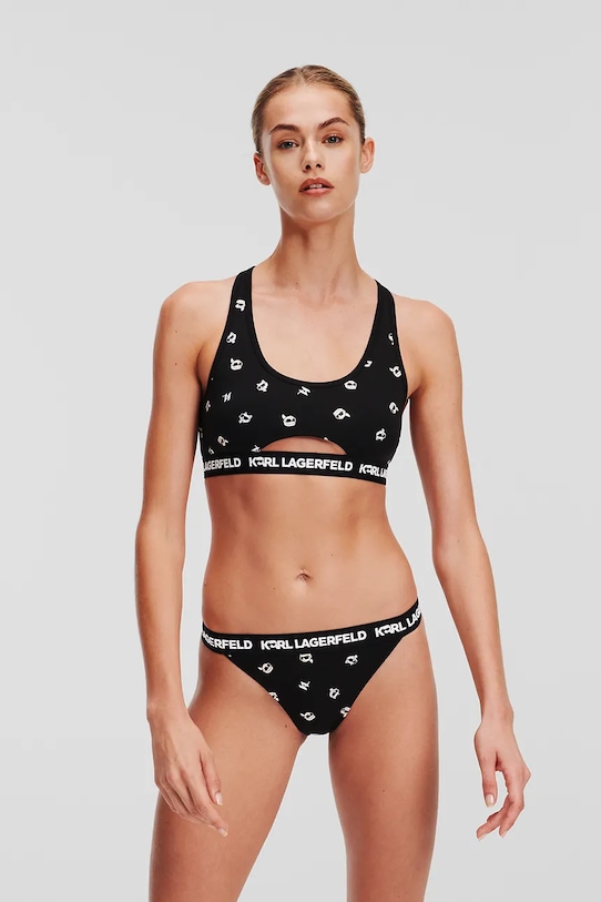 Этот бюстгальтер-бралетт из коллекции Карла Лагерфельда изготовлен из хлопка. - Мягкая чашка без косточек и других жестких элементов обеспечивает полный комфорт использования. - Тонкий, эластичный трикотаж. - Модель отделана эластичной лентой.