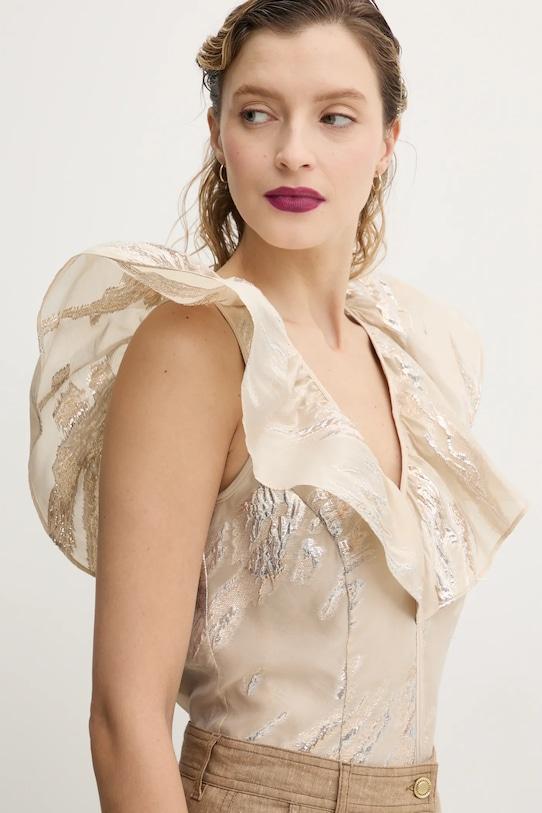 Эта блузка из коллекции Bruuns Bazaar выполнена из тонкой, слегка эластичной ткани. Эта модель выполнена из эффектного мерцающего материала. - Простой дизайн, не стесняющий движений. - Декоративный, заостренный вырез. - Нерегулируемые лямки не соскальзывают с плеч, обеспечивая комфорт во время занятий. - Модель с декоративной оборкой. - Модель с открытой спиной. - Декоративная шнуровка на спине. - Застежка-молния сзади. - Дополнительный слой материала в виде подкладки.