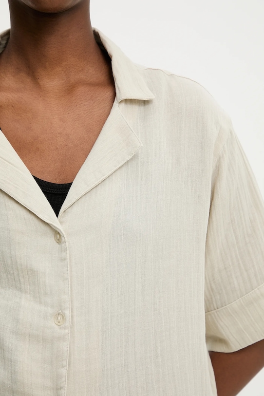 Эта рубашка Answear.LAB сшита из гладкой, слегка эластичной ткани, изготовленной из дышащего хлопка. - Свободный крой со спущенными плечами. - Мягкий воротник-боулинг. - Короткий рукав. - Крой рукава со спущенной линией плеча не ограничивает подвижность. - Имеет разрезы по бокам. - Удобная застежка на кнопки позволяет легко надевать и снимать. - Тонкая, слегка эластичная ткань. - Длина: 68 см. - Ширина под мышками: 68 см. - Размеры указаны для размера: S.
