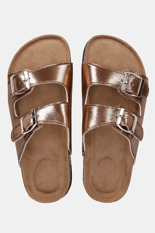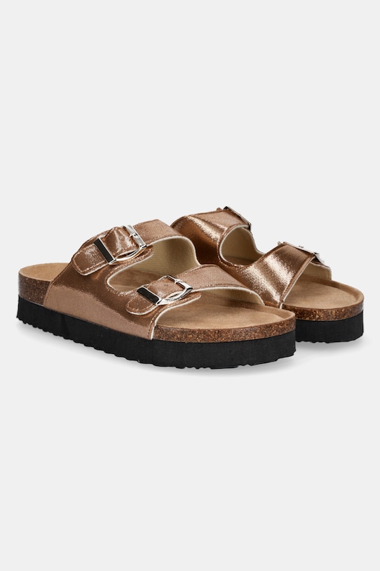 Шлёпанцы из коллекции Answear.LAB из натуральной кожи. Лёгкие и удобные, эти слипоны идеально подойдут для повседневной носки. - Застежка на две пряжки со штифтом для индивидуальной посадки. - Подошва из пеноматериала обеспечивает более мягкое ощущение и дополнительную амортизацию. - Модель на плоской подошве. - Пробковая стелька анатомической формы повышает комфорт и поддерживает стопу. - Текстильная внутренняя часть комфортна для ног и облегчает содержание обуви в чистоте.