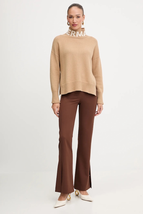 Этот свитер из коллекции Ermanno Scervino выполнен из плотной пряжи. Содержание шерсти обеспечивает защиту от холода, а добавление полиамида увеличивает прочность изделия. - Свободный крой, обеспечивающий полную свободу движений. - Крой рукава со спущенной линией плеча не ограничивает подвижность. - Модель со стразами. - Модель с высоким воротом. - Длина рукава (от горловины): 70 см. - Длина: 58 см. - Ширина под мышками: 62 см. - Размеры указаны для размера: 36.