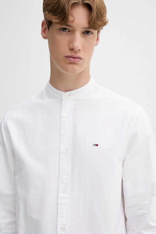 Эта рубашка Tommy Jeans сшита из тонкой, неэластичной ткани, изготовленной из дышащего хлопка. - Модель частично изготовлена из переработанного хлопка. - Рубашка прямого кроя мягко облегает фигуру, но не подчеркивает ее, обеспечивая свободу движений. - Модель с воротником-стойкой. - Застежка на пуговицы. - Манжеты на пуговицах. - Длина: 74 / 82 см. - Длина рукава: 66 см. - Ширина под мышками: 53 см. - Ширина плеч: 47 см. - Размеры указаны для размера: M.