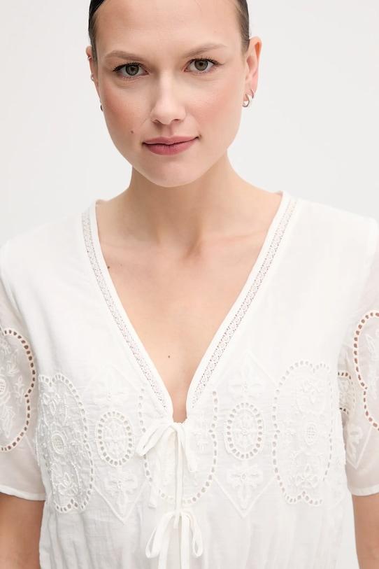 Это платье из коллекции Pepe Jeans выполнено из тонкой, неэластичной ткани. Модель выполнена из дышащего материала с высоким содержанием вискозы. - Модель мини-длины. - Расклешенный крой. - Короткий рукав. - Острый вырез. - Эластичный пояс со шнурками. - Дополнительный слой материала в виде подкладки. - Модель с декоративными завязками. - Модель с декоративной аппликацией. - Длина: 86 см. - Ширина под мышками: 48 см. - Размеры указаны для размера: S.