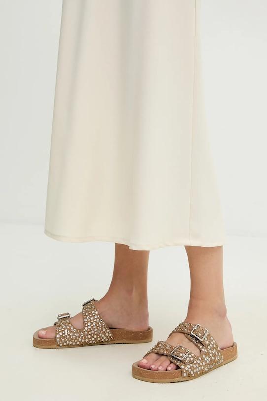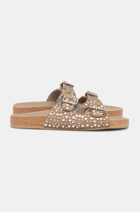Эти шлёпанцы из коллекции Answear.LAB изготовлены из комбинации замши и синтетического материала. Эти лёгкие и удобные слипоны идеально подходят для повседневной носки. - Застежка на две пряжки со штифтом для индивидуальной посадки. - Модель с кожаной внутренней частью, комфортной для стопы, предотвращающей натирание, потертости и появление неприятного запаха. - Резиновая подошва прочная и устойчивая к повреждениям. - Длина вставки: 25 см. - Размеры указаны для размера: 39