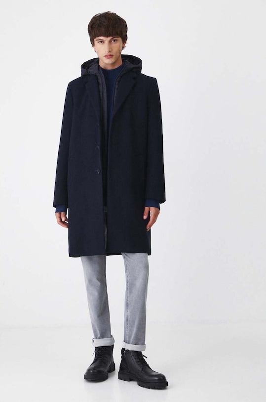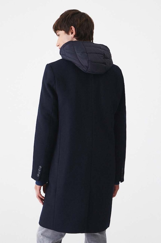 Пальто из коллекции «Медицина». Утеплённая модель выполнена из смесовой шерсти. - Простой дизайн. - Модель со съемной стеганой подкладкой. - Съемный капюшон со шнурками. - Однобортный пиджак с застежкой на пуговицы. - Два боковых накладных кармана. - Разрез сзади. - Меланжевый трикотаж. - Утепленная модель с подкладкой. - Длина рукава: 67 см. - Длина: 102 см. - Ширина под мышками: 59 см. - Ширина плеч: 47,5 см. - Размеры указаны для размера: L.