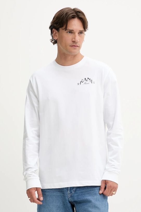 Этот лонгслив из коллекции Karl Kani выполнен из тонкой эластичной ткани. Модель выполнена из исключительно комфортного хлопкового материала. - Непринужденный стиль. - Классический круглый вырез. - Крой рукава со спущенной линией плеча не ограничивает подвижность. - Рукава отделаны удобными эластичными манжетами. - Модель с принтом на груди и спине. - Плоские швы защищают кожу от натирания и раздражения и обеспечивают высокий уровень комфорта во время занятий спортом.