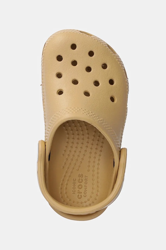 Детские шлёпанцы из коллекции Crocs из синтетического материала. Лёгкие и удобные, идеально подходят для повседневной носки. - Оригинальная пена Croslite обеспечивает высокий комфорт в течение всего дня. - Подвижная пятка позволяет носить обувь двумя способами. - Анатомическая стелька поддерживает свод стопы и обеспечивает длительный комфорт. - Рифленая внутренняя стелька предотвращает скольжение стопы внутрь. - Длина вставки: 16 см. - Размеры указаны для размера: 24/25.