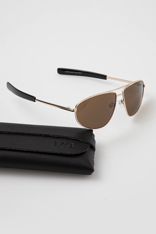 Солнцезащитные очки из коллекции Answear.LAB. Модель с гладкими линзами и оправой из комбинации пластика и металла. - Категория 3 (пропускает 8–18% света) — самая распространённая и универсальная категория затемняющих фильтров. Очки категории 3 идеально подходят для повседневного использования в солнечные дни и для отдыха в жарких странах. - УФ-фильтр защищает чувствительную радужную оболочку от UVA- и UVB-излучения. - В комплект модели входит чехол. - Форма оправы: авиатор.