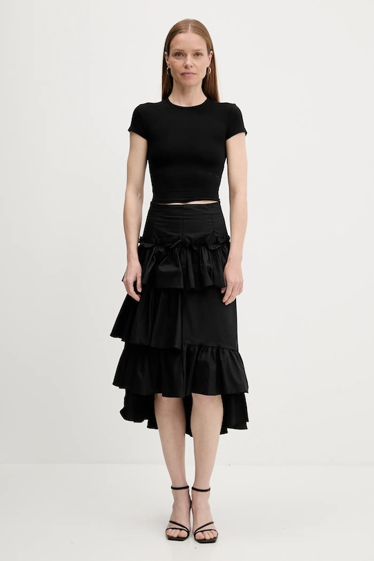 Юбка из коллекции Answear.LAB выполнена из тонкой, слегка эластичной ткани. Модель выполнена из исключительно комфортного хлопкового материала. - Асимметричная модель. - Расклешенный крой. - Застегивается сбоку на потайную молнию. - Высокая талия. - Дополнительный слой материала в виде подкладки. - Модель с декоративными оборками. - Плоские швы защищают кожу от ссадин и раздражения. - Ширина талии: 35,5 см. - Длина: 67/87,5 см. - Указаны размеры: S/M.