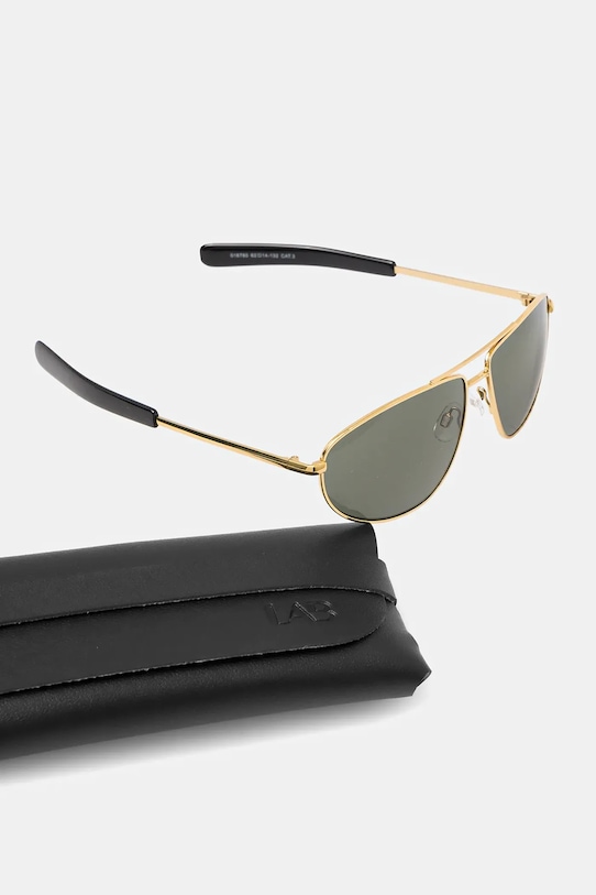 Солнцезащитные очки из коллекции Answear.LAB. Модель с гладкими линзами и оправой из комбинации пластика и металла. - Категория 3 (пропускает 8–18% света) — самая распространённая и универсальная категория затемняющих фильтров. Очки категории 3 идеально подходят для повседневного использования в солнечные дни и для отдыха в жарких странах. - УФ-фильтр защищает чувствительную радужную оболочку от UVA- и UVB-излучения. - В комплект модели входит чехол. - Форма оправы: авиатор.