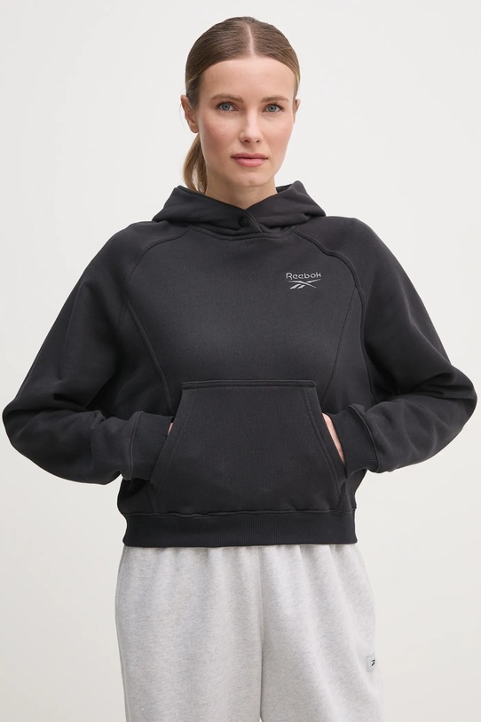 Эта толстовка с капюшоном из коллекции Reebok Classic выполнена из эластичного трикотажа. Модель выполнена из исключительно комфортного хлопкового материала. - Рукава реглан благодаря своей конструкции обеспечивают большую свободу движений. - Практичный вставной карман-кенгуру спереди. - Рукава и низ изделия отделаны удобными эластичными манжетами. - Простой дизайн, не стесняющий движений. - Длина: 52 см. - Ширина под мышками: 55 см. - Размеры указаны для размера: S.