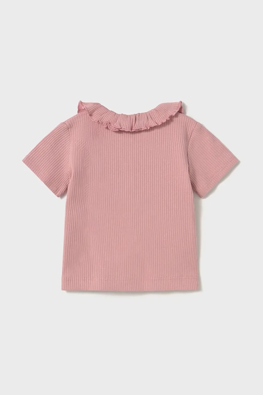 Эта детская футболка из коллекции Mayoral выполнена из тонкой, слегка эластичной ткани. Это исключительно комфортный материал с высоким содержанием хлопка. – Инициатива «Лучший хлопок». Изделия с этой маркировкой содержат не менее 50% хлопка от розничного продавца или бренда, участвующего в инициативе «Лучший хлопок» и инвестирующего в развитие BCI. - Простой дизайн, не стесняющий движений. - Короткий рукав. - Модель с декоративными оборками. - Короткая планка с пуговицами.