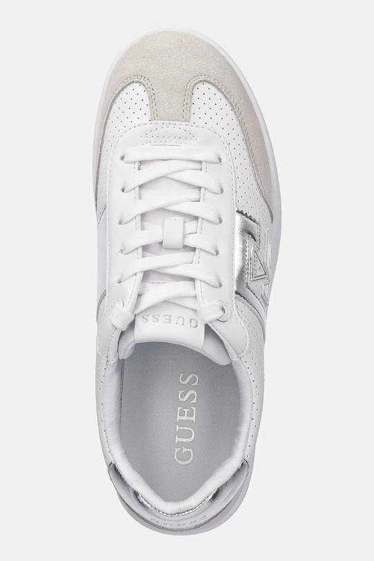 Кроссовки из коллекции Guess, изготовленные из комбинации замши и искусственной кожи, легкие и удобные, идеально подходят для повседневной носки. - Зажатый нос. - Усиленный задник обеспечивает отличную поддержку лодыжки и пятки. - Классическая шнуровка позволяет индивидуально подогнать обувь по ноге. - Резиновая подошва прочная и устойчивая к повреждениям. - Съемная, легко чистящаяся текстильная вставка. - Длина вставки: 26 см. - Размеры указаны для размера: 39.