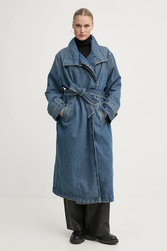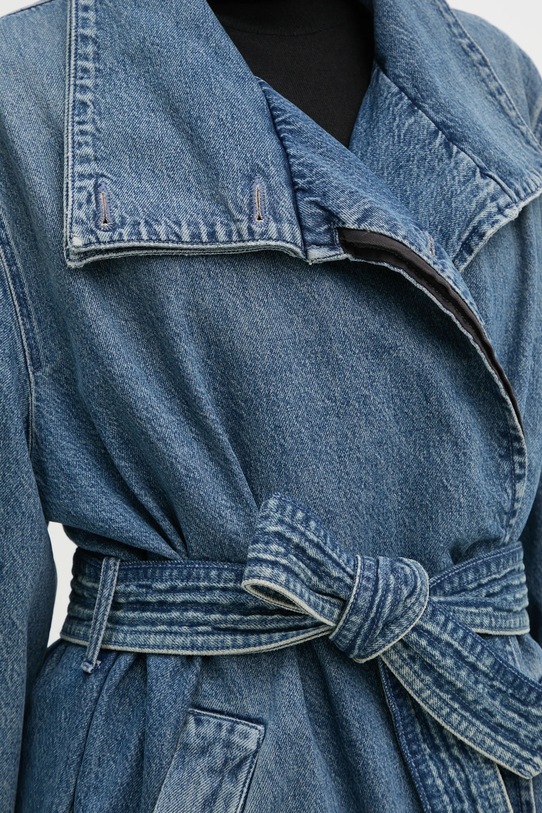 Это пальто из коллекции Won Hundred. Эта модель без подкладки выполнена из денима и исключительно комфортной хлопковой ткани. - Простой дизайн, не стесняющий движений. - Длинная застежка на пуговицы. - Два боковых накладных кармана. - Декоративно выстиранный деним. - Текстильный ремешок в комплекте. - Классические лацканы. - Длина рукава: 59 см. - Длина: 123 см. - Ширина под мышками: 60 см. - Ширина плеч: 50 см. - Размеры указаны для размера: 36.