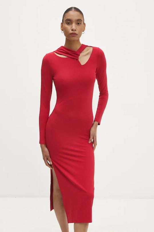 Это платье из коллекции Answear.LAB выполнено из тонкого, высокоэластичного трикотажа. Материал мягкий и приятный на ощупь. - Приталенный крой, подчеркивающий силуэт. - Длинный рукав. - Классический круглый вырез. - Декоративный вырез на горловине. - У него есть щель. - Гладкая трикотажная ткань. - Длина рукава: 61 см. - Длина: 122 см. - Ширина под мышками: 38 см. - Ширина талии: 33 см. - Ширина бедер: 39 см. - Размеры указаны для размера: S.