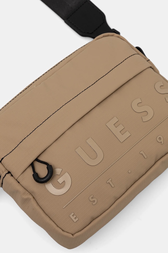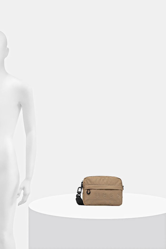 Сумка из коллекции Guess. Изготовлена из текстильного материала. - Основное отделение на молнии. - Съемный регулируемый ремешок. - Карман на молнии спереди. - Имеет внутренние карманы, в том числе один на молнии. - Количество внутренних накладных карманов: 2. - Не подходит для формата А4. - Модель на подкладке. - Минимальная длина ремня: 100 см. - Максимальная длина ремня: 162 см. - Глубина: 4 см. - Высота: 14 см. - Ширина у основания: 19 см.
