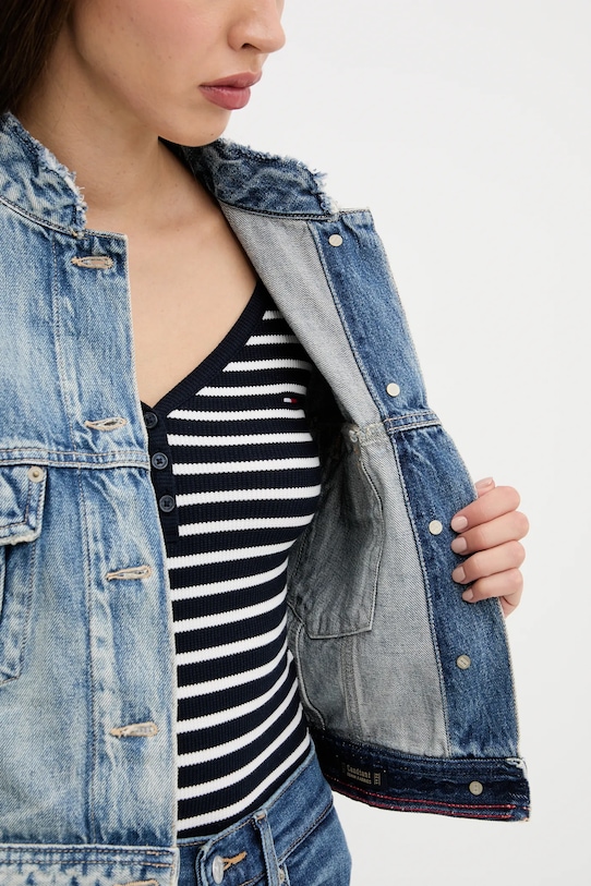Эта куртка из коллекции Tommy Jeans. Модель без подкладки выполнена из денима — плотного, сохраняющего форму материала. - Свободный крой, обеспечивающий полную свободу движений. - Крой рукава со спущенной линией плеча не ограничивает подвижность. - Мягкие манжеты с застежкой на пуговицы. - Удобная застежка на кнопки позволяет легко надевать и снимать. - Декоративно выстиранный деним. - Длина: 46 см. - Ширина под мышками: 53 см. - Размеры указаны для размера: S.