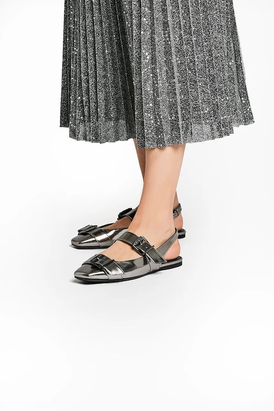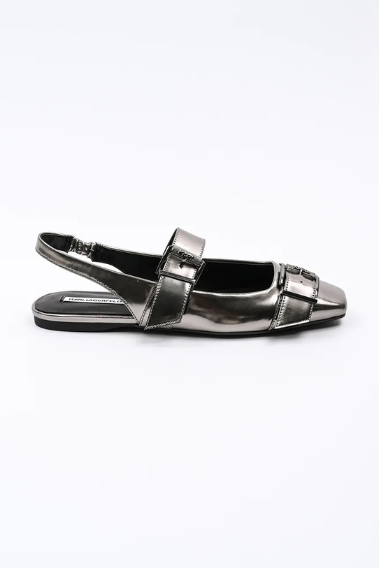 Балетки из коллекции Karl Lagerfeld. Изготовленные из натуральной кожи, эти туфли имеют кожаную подкладку, которая обеспечивает комфорт и предотвращает натирание, потертости и появление неприятного запаха. - Квадратный, жёсткий носок. - Кожаный салон. - Кожаная стелька комфортна для стопы и предотвращает натирание, потертости и появление неприятного запаха. - Застежка на две пряжки со штифтом для индивидуальной посадки. - Модель с открытой пяткой. - Устойчивая подошва.