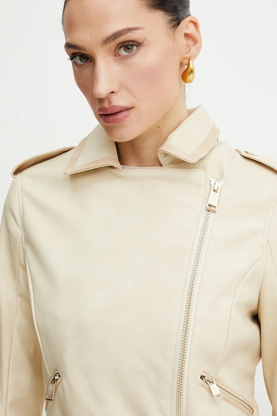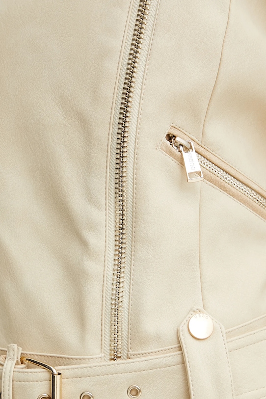 Байкерская куртка из коллекции Guess. Модель без подкладки выполнена из экокожи. Изготовлена из высококачественного и прочного материала. - Простой дизайн, не стесняющий движений. - Удобная застежка-молния позволяет легко надевать и снимать. - Ремешок из эко-кожи в комплекте. - Внешние карманы на молнии. - Погоны на плечах. - Модель на подкладке. - Молнии по низу рукавов. - Длина: 50 см. - Ширина под мышками: 45 см. - Размеры указаны для размера: S.