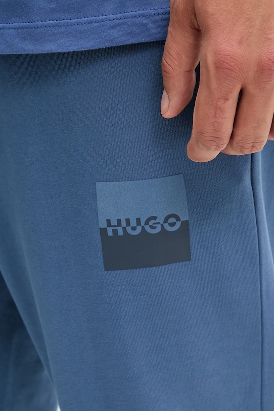Спортивные брюки из коллекции HUGO из эластичного трикотажа. Изготовлены из исключительно комфортного хлопкового материала. - Обычная посадка. - Эластичный пояс со шнурками. - Два накладных кармана спереди. - Ножки отделаны удобными эластичными манжетами. - Ширина талии: 42 см. - Ширина бедер: 55 см. - Высота талии: 32 см. - Ширина штанины внизу: 13 см. - Ширина штанины: 31 см. - Длина по внутреннему шву: 72 см. - Размеры указаны для размера: M.