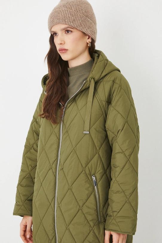 Пальто из коллекции «Медицина». Пальто с лёгким утеплителем, выполнено из стёганого материала. - Большой размер. - Рукав реглан. - Застегивается на двустороннюю молнию. - Капюшон с завязками. - Два прорезных боковых кармана на молнии. - Боковые разрезы застегиваются на кнопки. - Легкоутепленная модель с подкладкой. - Стеганая модель. - Длина рукава (от капюшона): 71 см. - Длина: 116 см. - Ширина груди: 58,5 см. - Размеры указаны для размера: S.