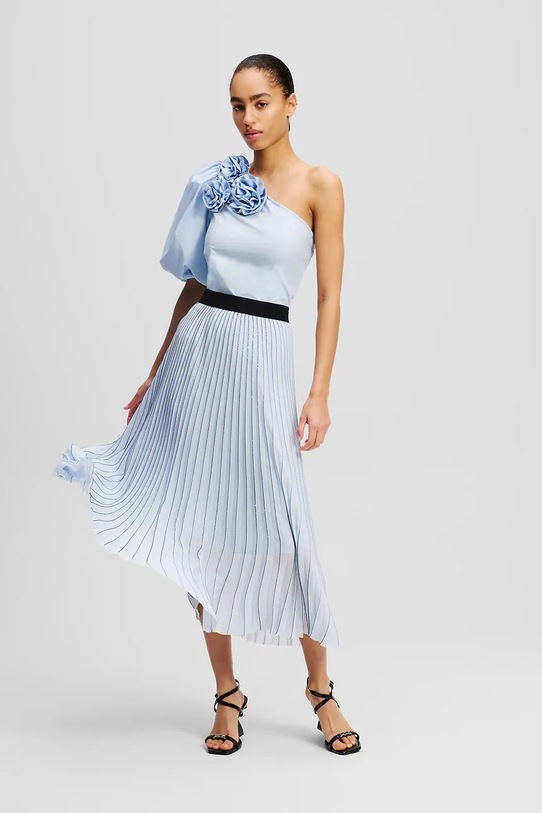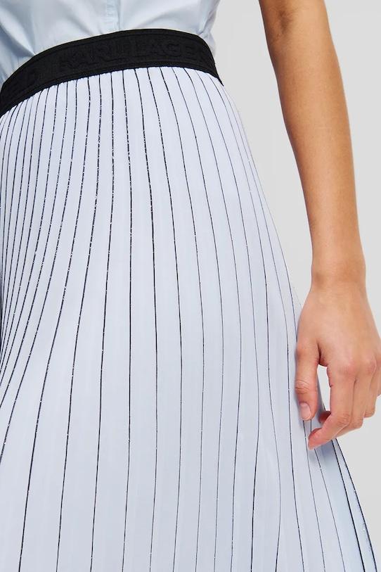 Юбка из коллекции Карла Лагерфельда. Расклешённый фасон из тонкой неэластичной ткани. - Расклешенный крой. - Высокая талия с эластичным поясом. - Плиссированный материал. - Модель с декоративной аппликацией. - Тонкий материал.