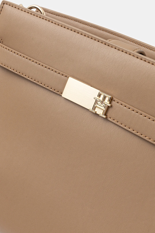 Небольшая сумочка из коллекции Tommy Hilfiger. Застёгивается на молнию, выполнена из экокожи. - Имеет три отделения, одно из которых застегивается на молнию. - Магнитная застежка. - Имеет три внутренних накладных кармана. - Внутренний карман на молнии. - Короткая ручка для удобной переноски в руке. - Усиленное дно сумки позволяет изделию долго сохранять форму. - Не подходит для формата А4. - Ширина у основания: 26 см. - Высота: 22 см. - Глубина: 10 см.