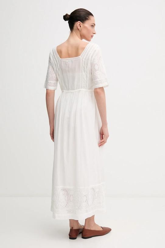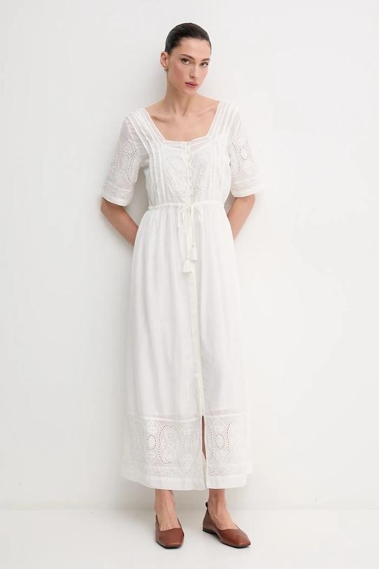 Это платье из коллекции Pepe Jeans выполнено из тонкой, неэластичной ткани. Модель выполнена из исключительно комфортного материала с высоким содержанием вискозы. - Расклешенный крой. - Алмазный вырез. - Короткий рукав. - Дополнительный слой материала в виде подкладки. - Удобная застежка на кнопки позволяет легко надевать и снимать. - Длина: 132 см. - Ширина под мышками: 46 см. - Размеры указаны для размера: S. - Регулировка ширины талии с помощью шнурков.