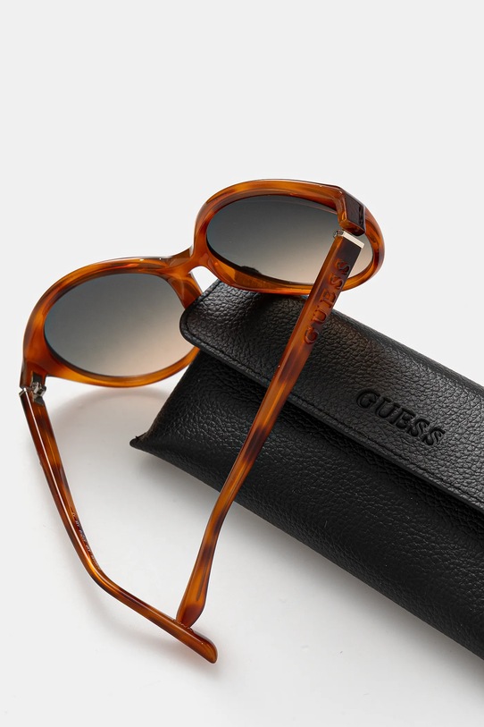 Солнцезащитные очки из коллекции Guess. Модель с градиентными линзами и пластиковой оправой. Защита от ультрафиолета UV 400. - Защитный фильтр UV400 защищает от ультрафиолетового излучения. - Категория 3 (пропускает 8–18% света) — самая распространённая и универсальная категория затемняющих фильтров. Очки категории 3 идеально подходят для повседневного использования в солнечные дни и для отдыха в жарких странах. - В комплект модели входят чехол и салфетка для протирки очков.