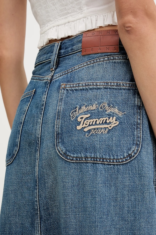 Эта джинсовая юбка Tommy Jeans изготовлена из исключительно приятной на ощупь хлопковой ткани. - Эта модель содержит регенерированные хлопковые волокна. Новые волокна и пряжа производятся из старых текстильных отходов и используются для производства новой одежды. - Застежка на пуговицы и молнию. - Три накладных кармана спереди. - Два накладных кармана на ягодицах. - Ширина талии: 35 см. - Ширина бедер: 48 см. - Длина: 81 см. - Размеры указаны для размера: 27.