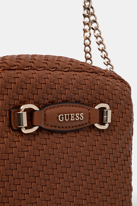 Небольшая сумочка из коллекции Guess. Модель на молнии, выполнена из экокожи. - Застежка-молния. - Внутренний карман на молнии. - Имеет внутренние отделения для карт. - Модель на подкладке. - Не подходит для формата А4. - Несъемный, нерегулируемый ремешок. - Входящий в комплект тканевый чехол защищает изделие от пыли. - Модель оснащена металлическими ножками, защищающими дно сумки. - Глубина: 9 см. - Высота: 14 см. - Ширина у основания: 19 см.