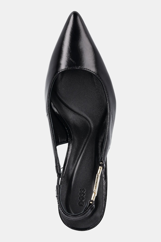 Эти туфли-шпильки BOSS изготовлены из натуральной кожи. Верх из непористой ткани легко чистится влажной тканью. - Заостренный, жесткий нос. - Модель с открытой пяткой. - Эластичная вставка обеспечивает индивидуальную посадку. - Модель с кожаной внутренней частью, комфортной для стопы, предотвращающей натирание, потертости и появление неприятного запаха. - Кожаная подошва. - Высота каблука: 8 см. - Длина вставки: 22,5 см. - Размеры указаны для размера: 36.