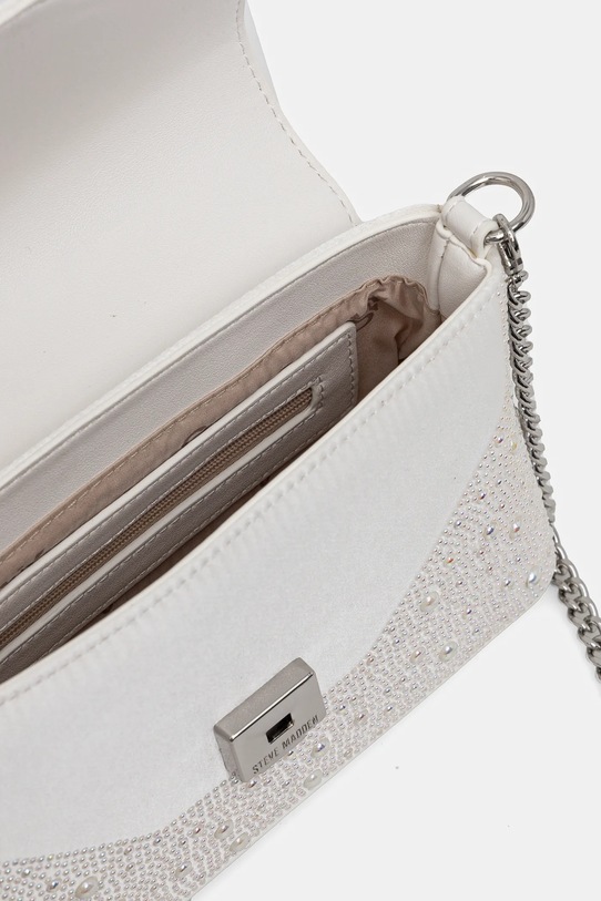 Небольшая сумочка из коллекции Стива Мэддена. Модель на молнии, выполнена из текстиля. - Данное изделие частично изготовлено из переработанного полиэстера. - Застежка-кнопка. - Съемный регулируемый ремешок. - Не подходит для формата А4. - Модель на подкладке. - Модель оснащена металлическими ножками, защищающими дно сумки. - Имеет два внутренних кармана: один прорезной, другой на молнии. - Глубина: 6 см. - Высота: 13 см. - Ширина у основания: 21,5 см.