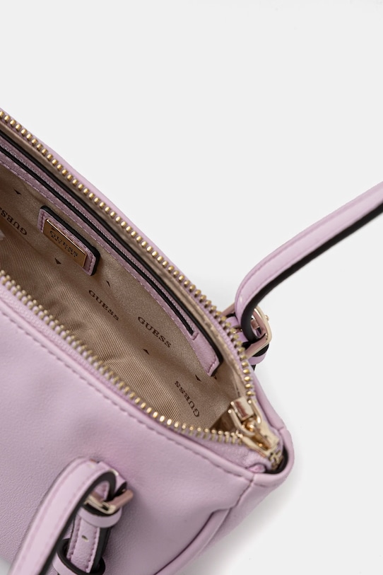 Небольшая сумочка из коллекции Guess. Модель на молнии, выполнена из экокожи. - Застежка-молния. - Модель на подкладке. - Не подходит для формата А4. - Модель оснащена металлическими ножками, защищающими дно сумки. - Регулируемые ручки. - Входящий в комплект тканевый чехол защищает изделие от пыли. - Количество внутренних карманов на молнии: 1. - Количество слотов для карт: 3. - Глубина: 9 см. - Высота: 11,5 см. - Ширина у основания: 20,5 см.