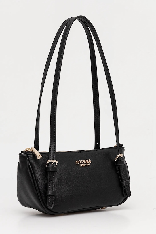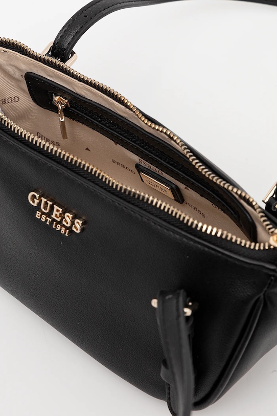 Небольшая сумочка из коллекции Guess. Модель на молнии, выполнена из экокожи. - Застежка-молния. - Модель на подкладке. - Не подходит для формата А4. - Модель оснащена металлическими ножками, защищающими дно сумки. - Регулируемые ручки. - Входящий в комплект тканевый чехол защищает изделие от пыли. - Количество внутренних карманов на молнии: 1. - Количество слотов для карт: 3. - Глубина: 9 см. - Высота: 11,5 см. - Ширина у основания: 20,5 см.