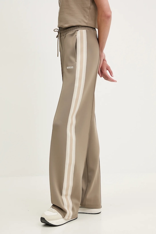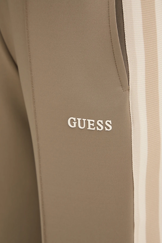 Спортивные брюки из коллекции Guess из плотной, слегка эластичной ткани. - Изделие содержит переработанные волокнистые материалы. - Свободный крой, обеспечивающий полную свободу движений. - Эластичный пояс со шнурками. - Два боковых накладных кармана. - Ширина талии: 37 см. - Ширина бедер: 49 см. - Высота талии: 31 см. - Ширина штанины внизу: 24 см. - Ширина штанины: 29 см. - Длина по внутреннему шву: 82 см. - Размеры указаны для размера: S.