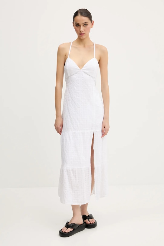Платье из коллекции Hollister Co. Модель выполнена из ткани с декоративной вышивкой, из исключительно комфортного хлопкового материала. - Простой дизайн, не стесняющий движений. - Острый вырез. - Модель с регулируемой шнуровкой. - Модель на подкладке. - Съемные подушечки обеспечивают легкую поддержку и дополнительное покрытие в области груди. - Два боковых накладных кармана. - Ширина под мышками: 35 см. - Длина: 125 см. - Размеры указаны для размера: S.